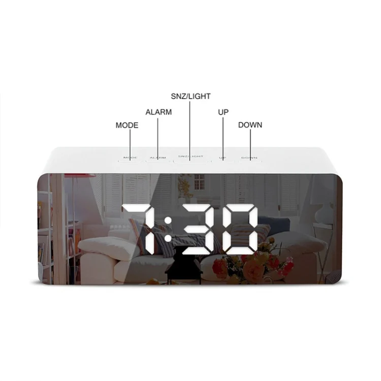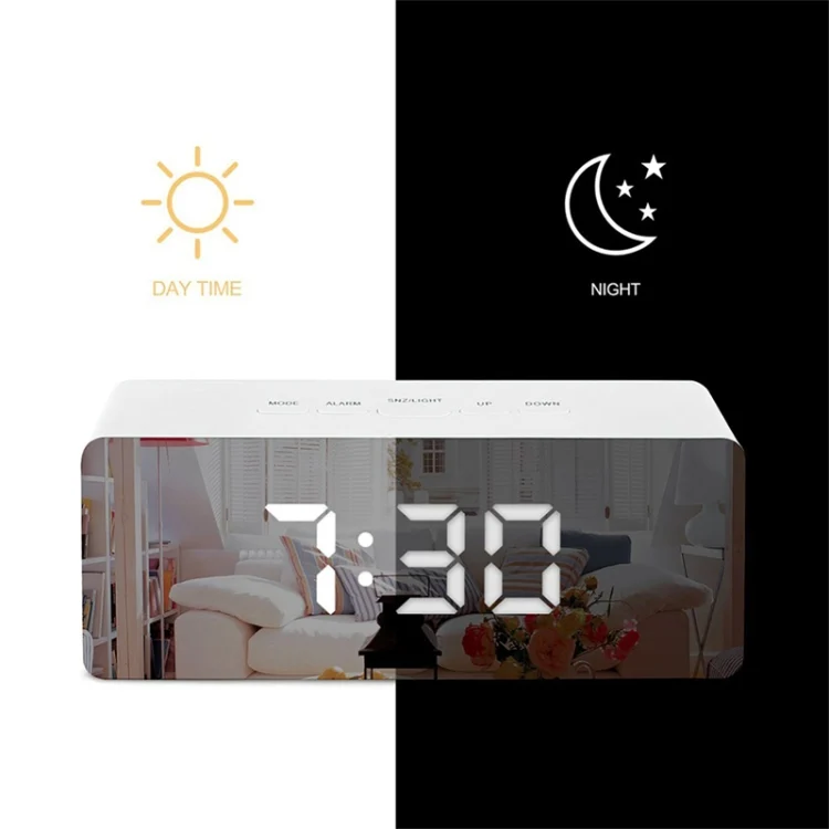 LED Mirror Alarm Clock Digital Snooze Table Clock Electronic Time Temperature Large Display with Wake Up Light