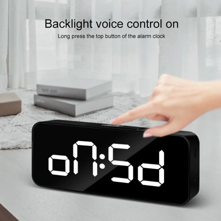 1. Turn on the backlight sound control, press and hold the button on the top of the alarm clock to set the backlight sound control on or off.