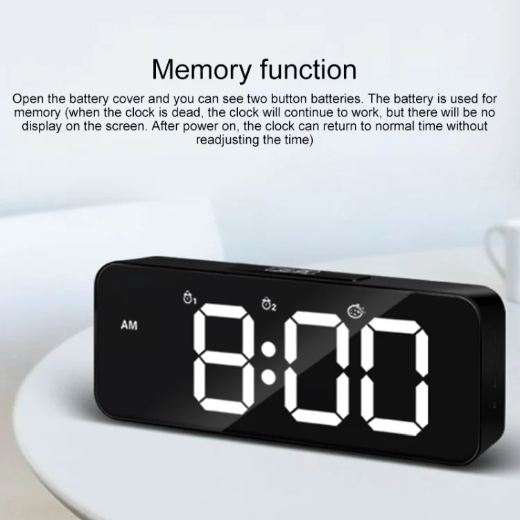 (When the clock has no power, the clock will continue to work, but there will be no display on the screen. After power on, the clock can return to normal time, no need to readjust the time)