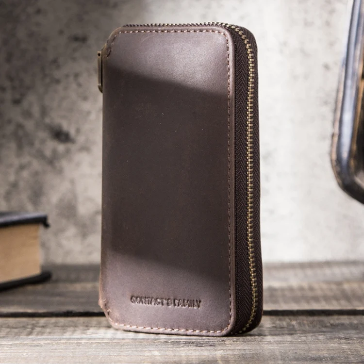 Contacts Family CF1114 Leather Watch Box Retro Crazy Horse Leather Zipper Couple Watch Bag