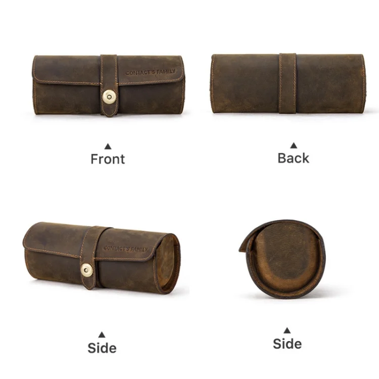 Contacts Family CF1117B 3 Watch Positions Leather Watch Box Round Buckle Outdoor Travel Watch Storage Box