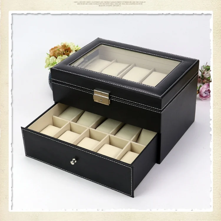 PU Leather Double Layer 20-Digit Watch Box Jewelry Gift Storage Box