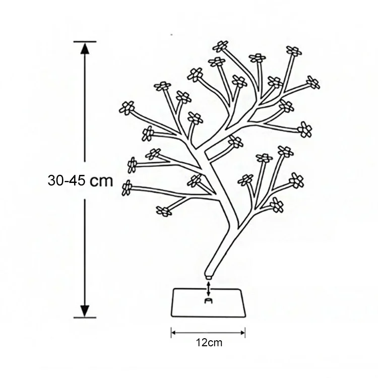 2. Size: The height of the tree is about 50 cm, the width of the bottom plate is 12 cm, with 2m length usb cable.