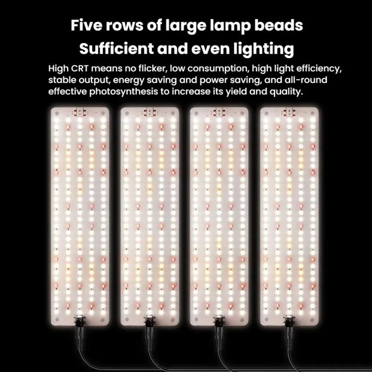3. Five rows of large lamp beads, sufficient and uniform light, high CRI, no flicker, low consumption, high light efficiency, stable output, energy saving and power saving, all-round effective photosynthesis, increase its yield and quality