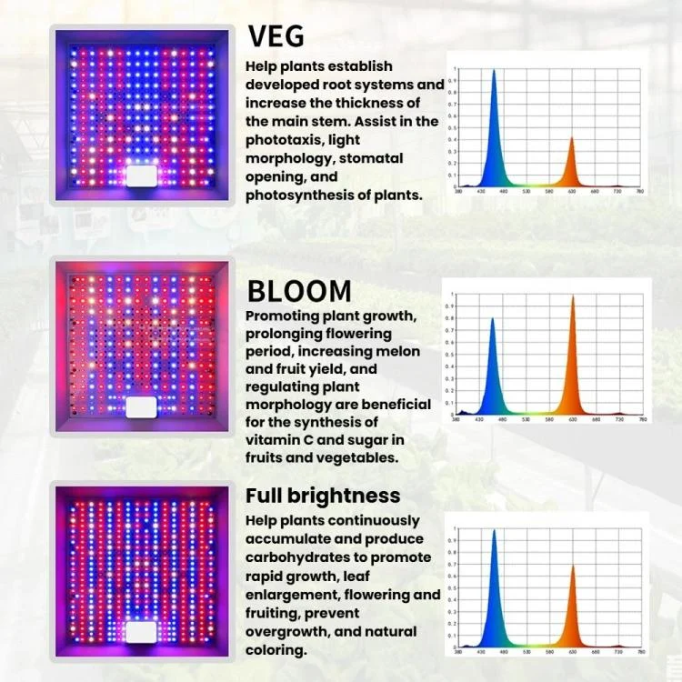 4. Three spectrum switching, by adjusting the ratio of light intensity of different wavelengths, simulate the spectrum requirements of different seasons or growth stages