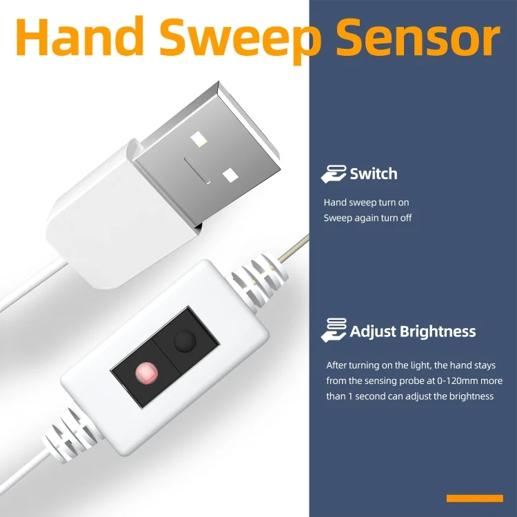 6. Sweep infrared sensor switch (sensing angle is about 120 degrees, sensing distance is about 9cm), memory function (how much brightness when turned off, the brightness will not change when turned on again), gradual stepless dimming (brightness will be automatically adjusted when you wave your hand for 2 seconds)