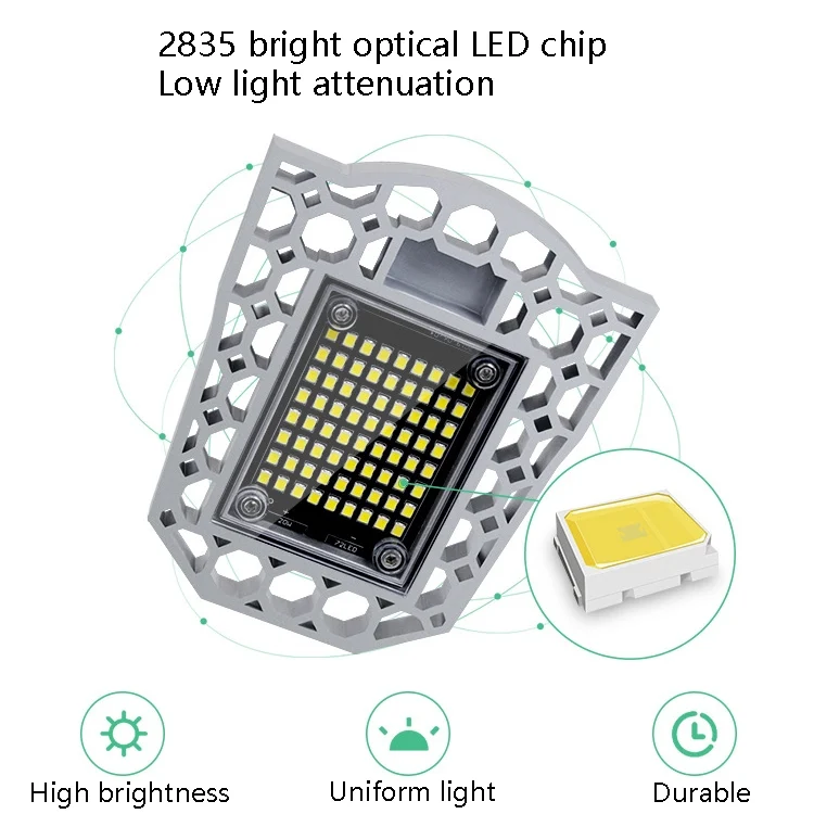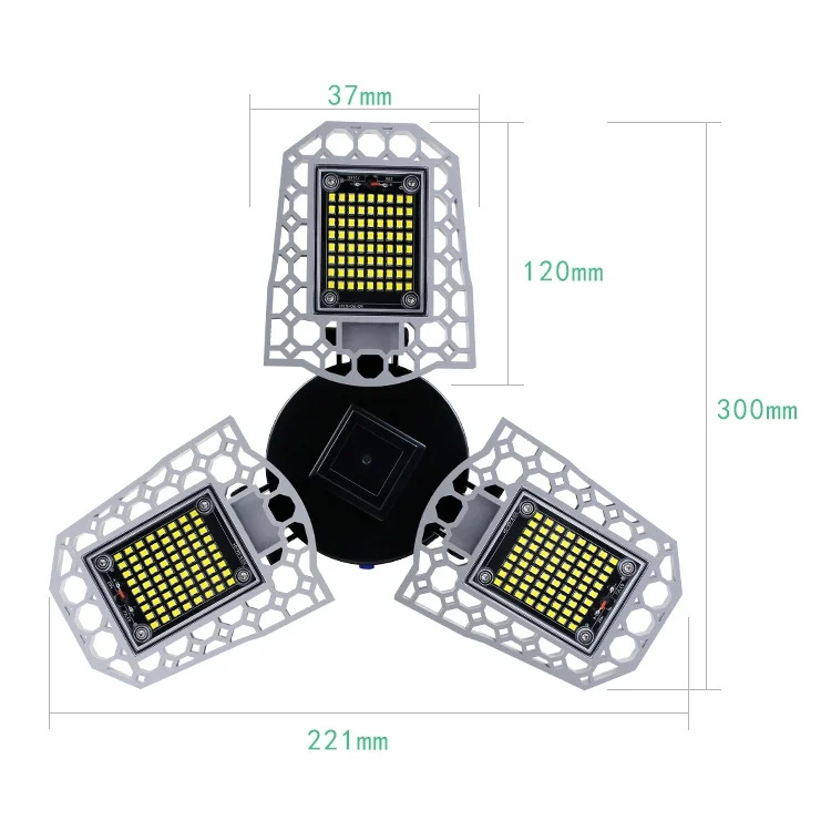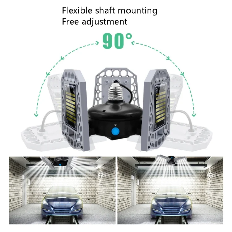 LED Industrial Mining Light Waterproof Light Sensor Folding Tri-Leaf Garage Lamp