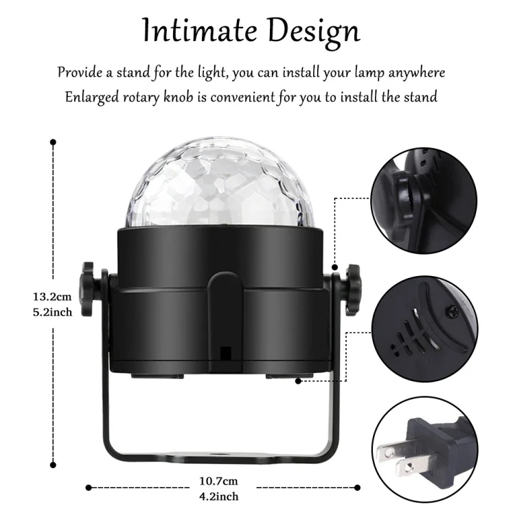 7. Sound-activated modes + 7 lighting modes + Rotating speed control.