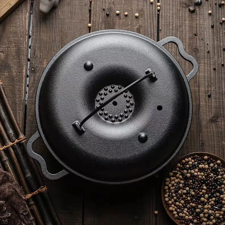 Cast Iron Sukiyaki Pot Roast Sweet Potato Pot Round Barbecue Grill Pan With Lid Turkey Roasting Pan