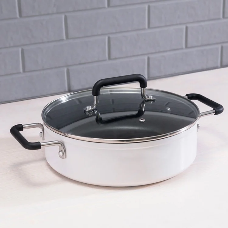 2. Aluminum alloy and stainless steel material body, flat dual layers composite structure bottom, heating evenly