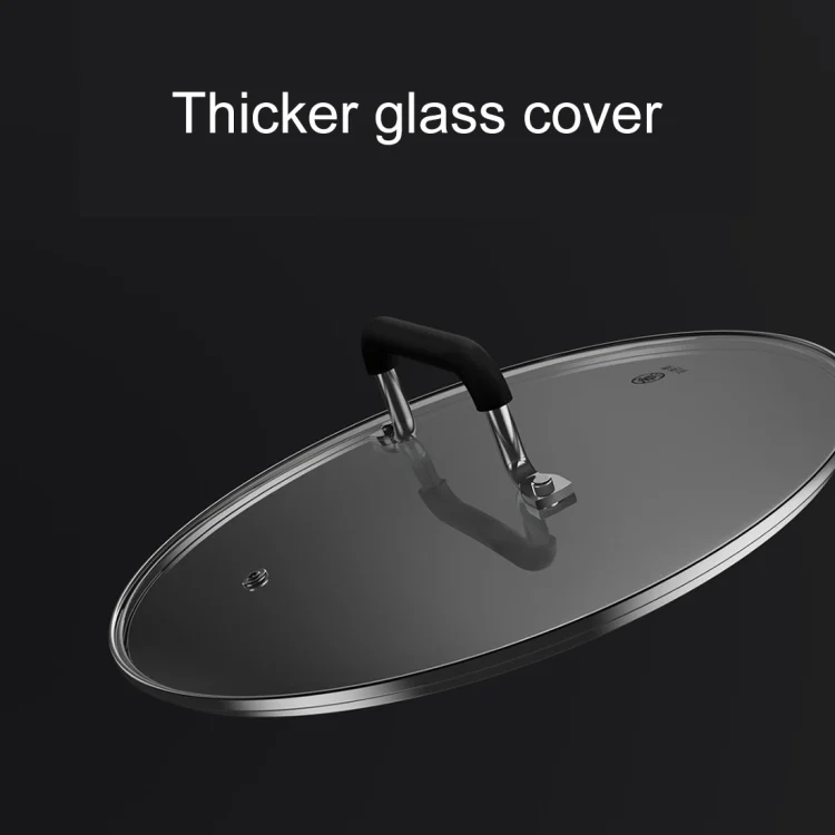 4. Curved tempered glass cover with anti-spill air hole, easy to see through and cook more throughly