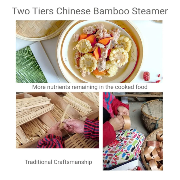 1. The lid of the steamer is made of bamboo skin, which is strong and tough and has a convenient handle design.