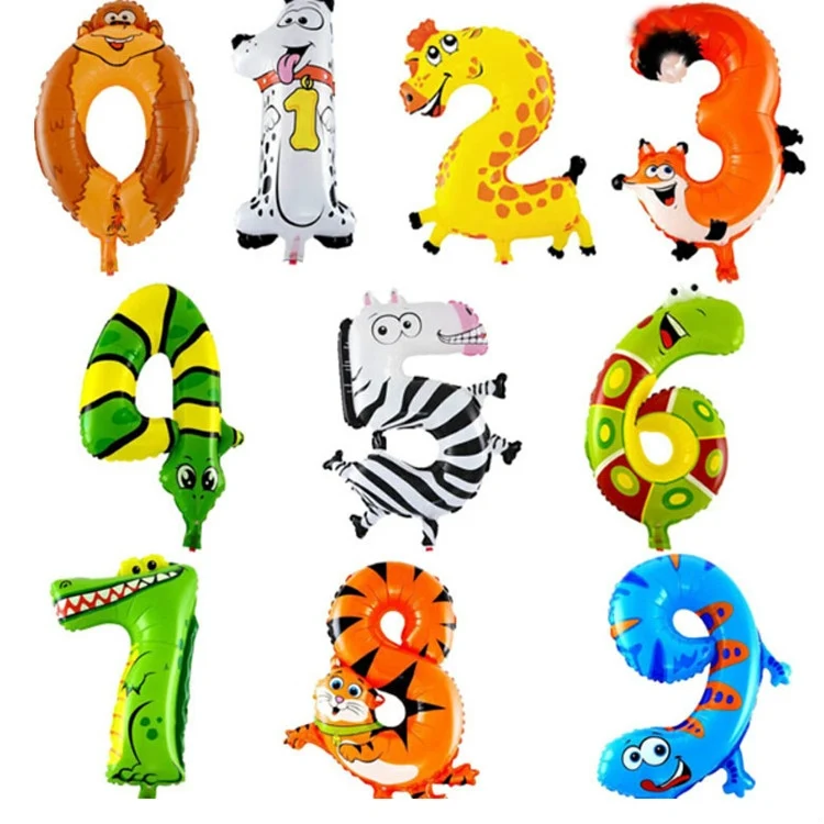 3 PCS 0-9 Digital Cartoon Children Birthday Party Decorated Aluminum Balloon