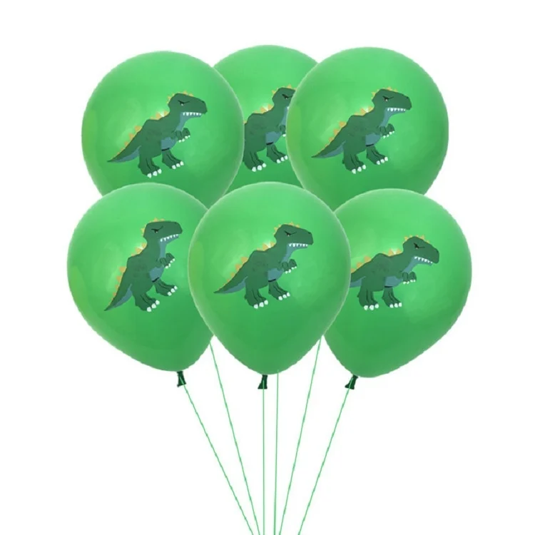 6. Included: 10 dinosaur-themed latex balloons, 10 green sequin balloons, 1 paper dinosaur pull flag, 2 large dinosaur aluminum film balloons, 2 green ribbon rolls