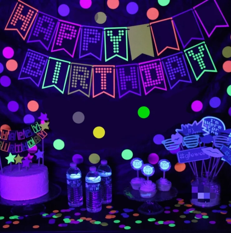 Fluorescent Party Decorations Fluorescent Letters Birthday Pull Flag Cake Insert Balloon Set
