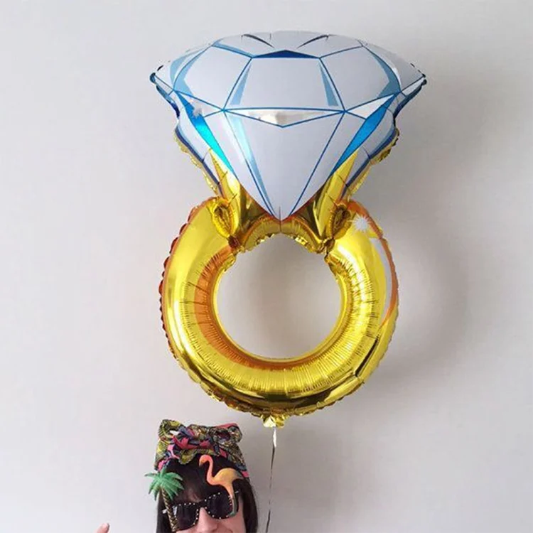 Wedding Marriage Room Decoration Balloon Diamond Ring Foil Balloon, Specification:Large Gold Diamond