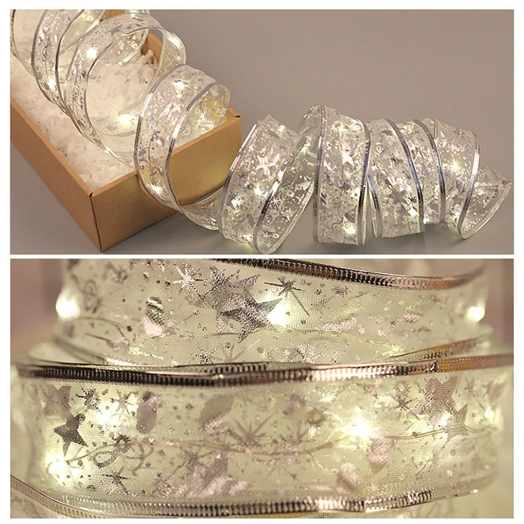4m 40LEDs Gift Decoration Ribbon Light String LED Copper Wire Ribbon Christmas Tree Top Bowknot Light