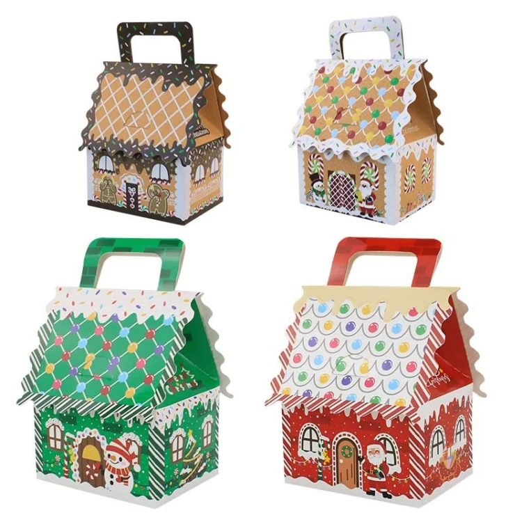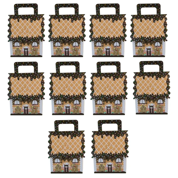 10pcs Christmas Candy Boxes Kraft Paper Christmas House Handbag Candy Boxes