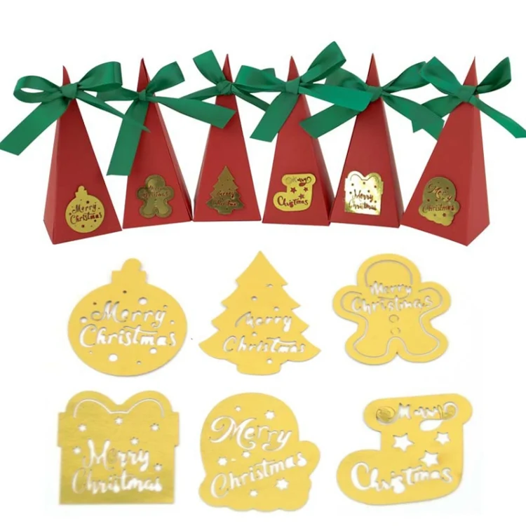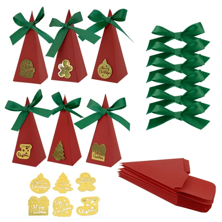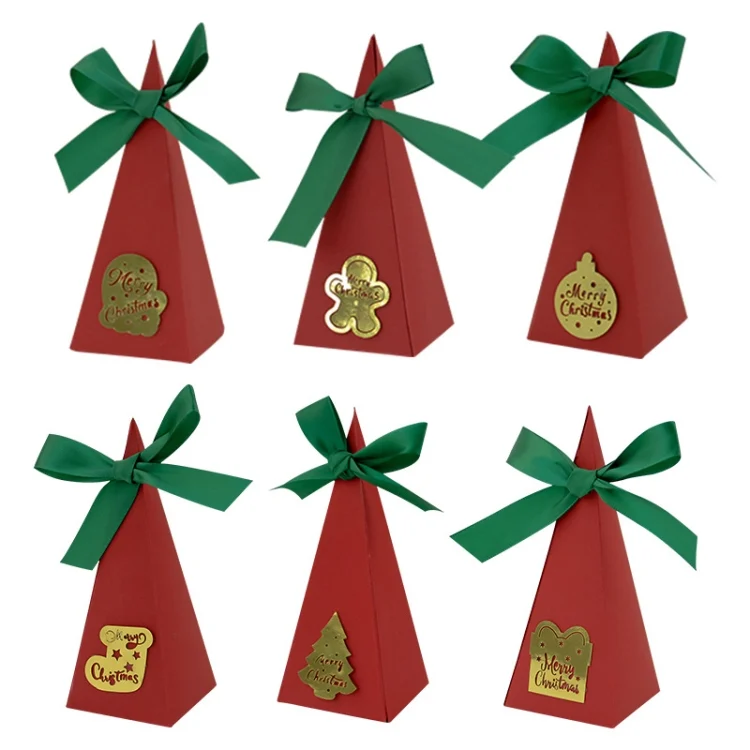 10pcs Christmas Candy Boxes Triangle New Year Party Xmas Gift Paper Packaging Box