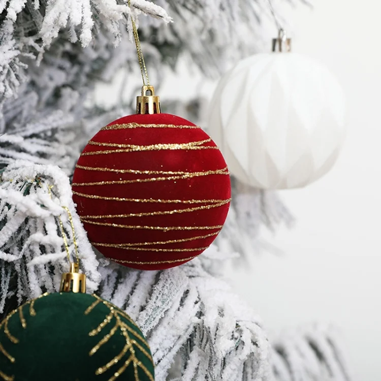 6pcs /Box 8cm Flocking Christmas Tree Hanging Balls Window Decoration Velvet Balls