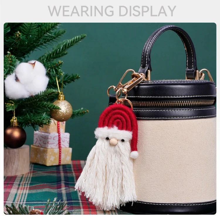 1. Classic Christmas color, cute Christmas tassel pendant, woven with cotton rope, hang it up to decorate your bag!