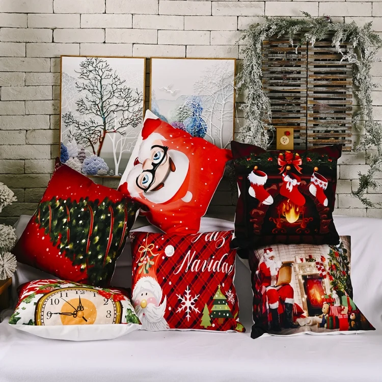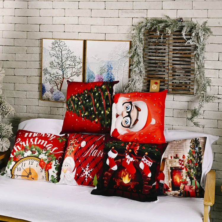 Christmas Ornaments Flannel Pillowcase Cartoon Printing Square Pillowcase Without Pillow Core