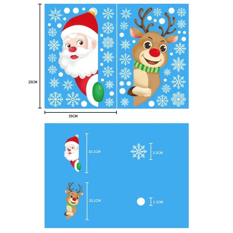 1set Christmas Window Grille Sticker Santa Claus Elk Glass Window Decoration