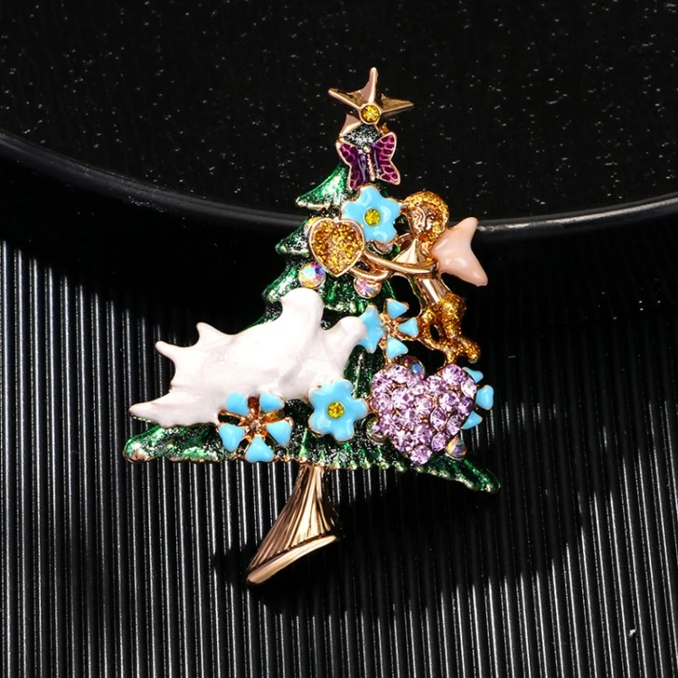 Christmas Brooch Fall Winter Jacket Sweater Pin Ornament Christmas Tree Corsage With Diamonds