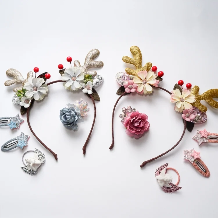 Christmas Hair Accessories Antlers Headband And Little Angel Hairpin Hair Band Combination Set