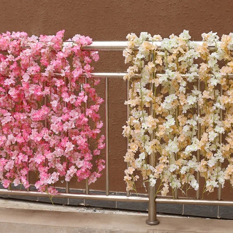 Simulation Sakura Rattan Plastic Decorative Flower Vine, Colour: 135 Flowers Deep Pink
