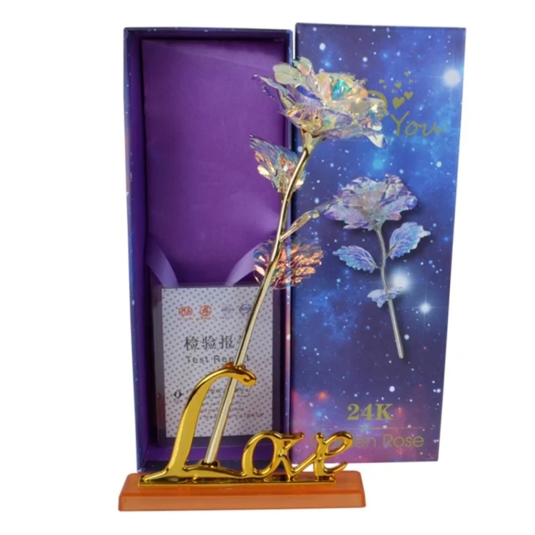 Valentine Day Creative Gift 24K Foil Plated Rose Gold Rose Lasts Forever Love Wedding Decor Lighting Rose