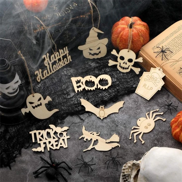 10pcs/set Halloween Decorations Holiday Party Wooden Pendants