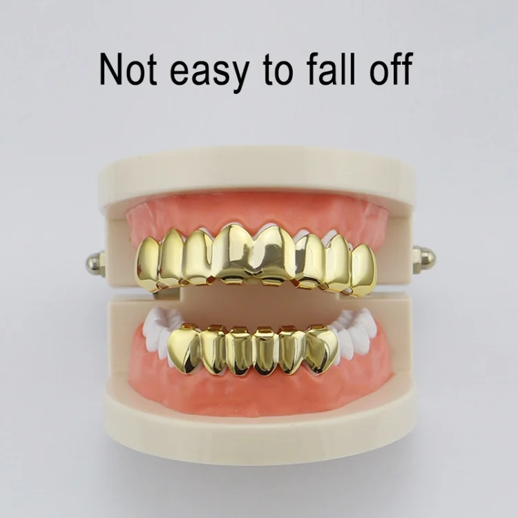 Hip Hop Accessories Gold Tooth Set Real Gold Plating Smooth Upper Eight Lower Six Denture Set