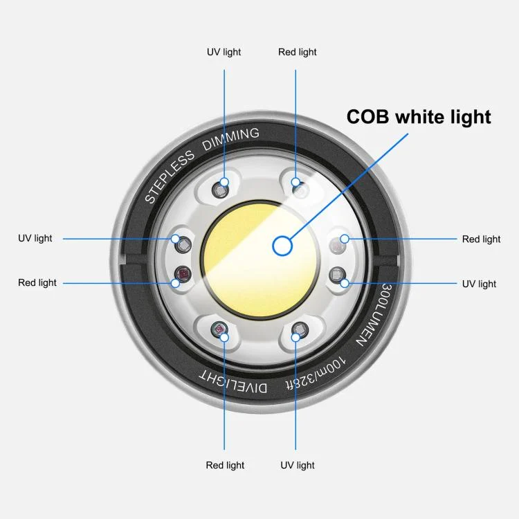1. Multifunctional underwater fill light, 6000 lumens strong light output, waterproof to 100 meters/328 feet