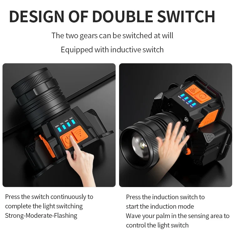 SASQUATCH T50 USB Charging Smart Sensor Head-Mounted Fishing Light Zoom Headlight Outdoor Miners Lamp,Style: