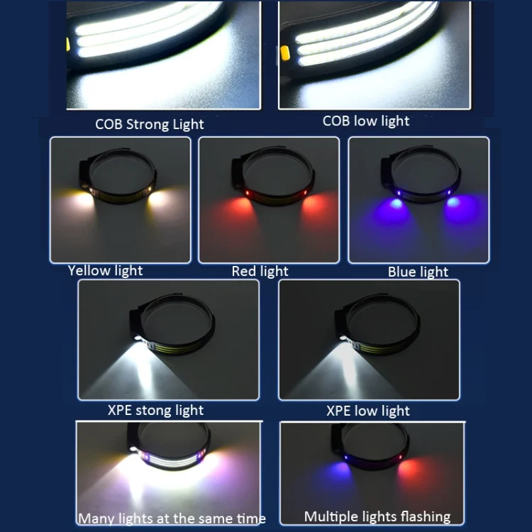7. Gears: COB strong light – COB weak light – yellow light – red light – blue light – XPE strong light – XPE weak light – multiple lights on at the same time – multiple lights flashing