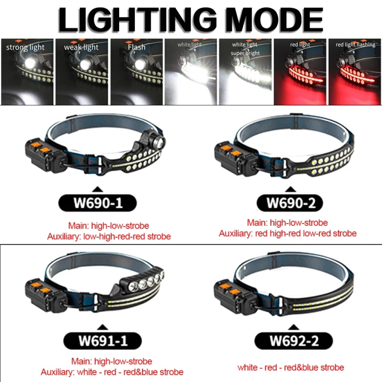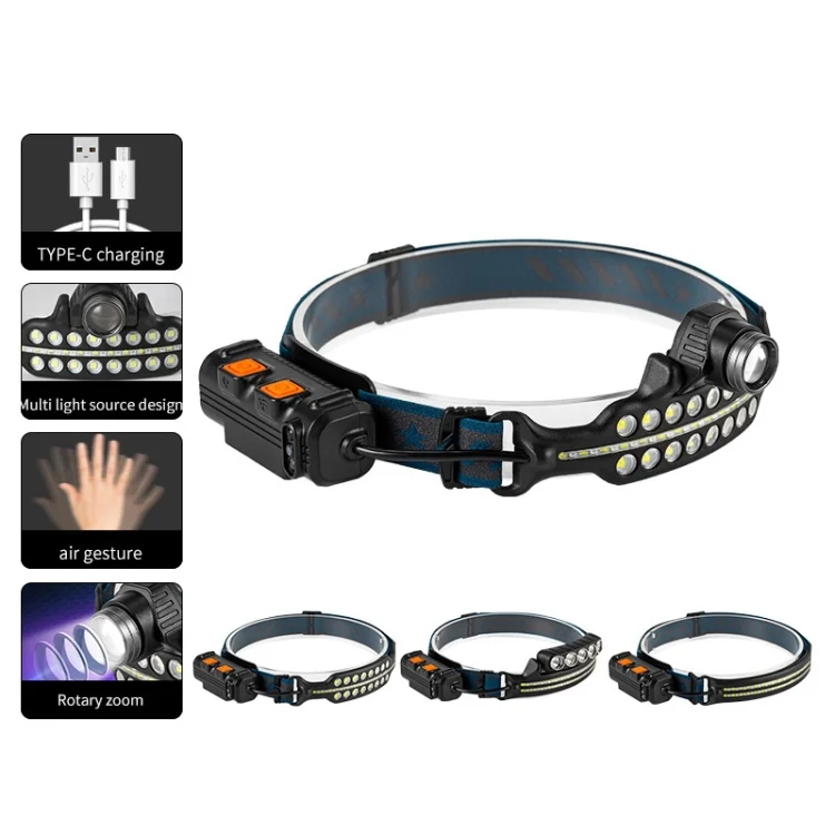 XPG+COB Induction Headlight Type-C Rechargeable Head Lamp