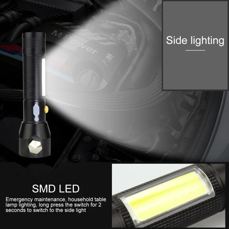 2. Side COB LED lamp, can be switched by pressing the switch for 2 seconds.