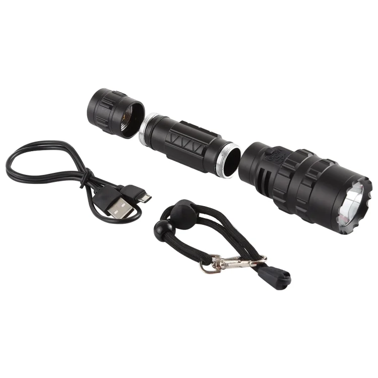 10W USB Charging XM-L2 T6 IPX6 Waterproof Strong LED Flashlight with 5-Modes & USB Cable & Rope