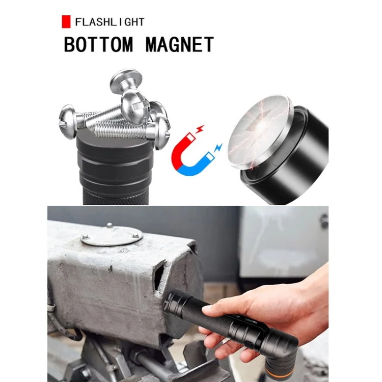 2. 90 degree foldable and magnetic: Our LED flashlight has a 90 degree rotating head and a magnetic tail. It is lightweight and compact with multiple functions. It is perfect for indoor and outdoor use.