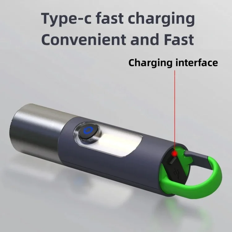 4. Free to switch four lighting modes, high brightness mode, medium brightness mode, burst flash mode, side light mode, Type-C fast charging, convenient, long-lasting range