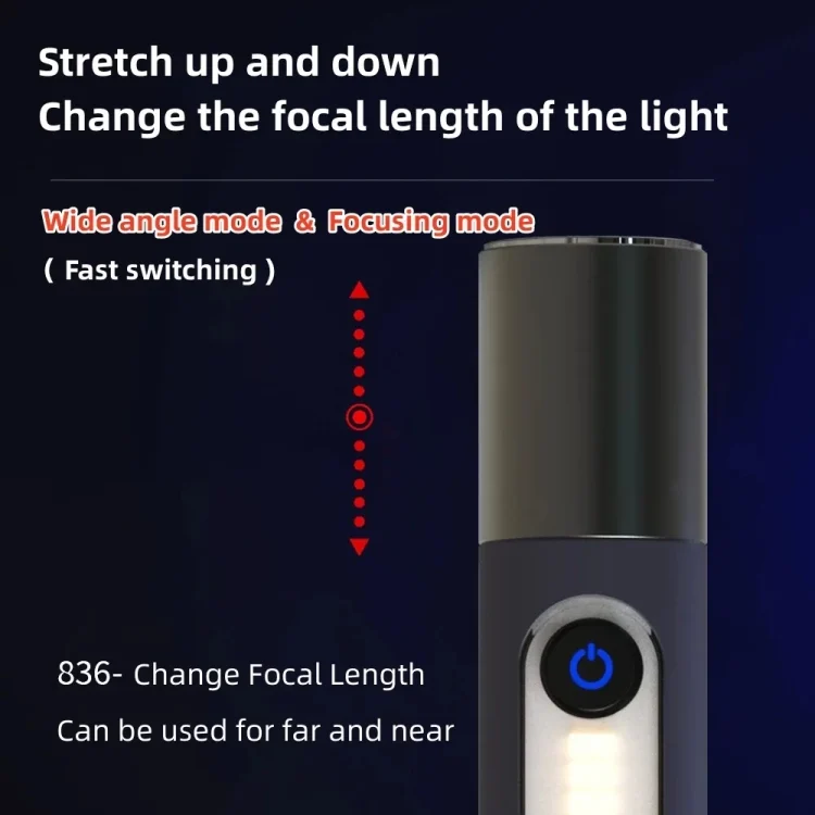 2. Pull-up focusing technology, flood/focus mode, fast switching, 836-zoom, near and far dual-use