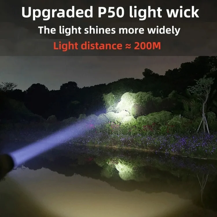 3. Upgraded P50/white laser wick, wider irradiation range, high power output, strong light shooting 200m, night travel convenience and safety