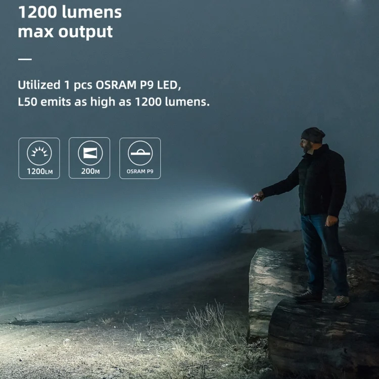 WUBEN L50 Outdoor Portable LED Strong Light USB Rechargeable Aluminum Flashlight