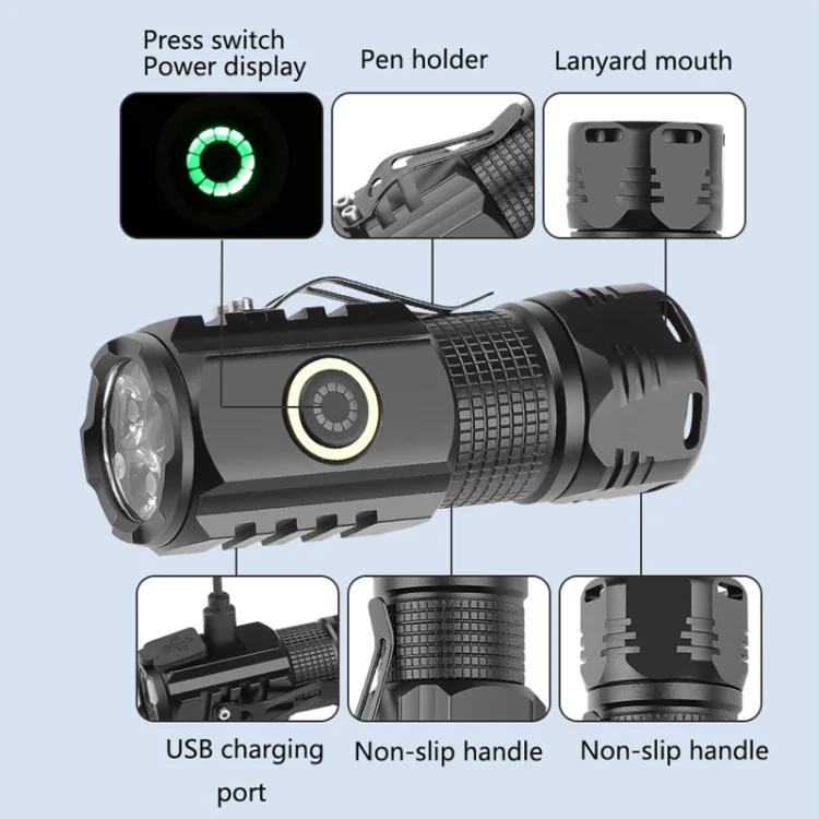 3LED Strong Light TYPE-C Charging Convenient Mini Multi-Function Flashlight