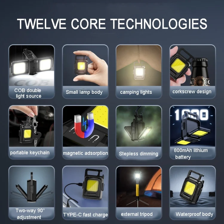 1. Double-sided COB design: left and right two COB panels, all-round high-brightness lighting, two-way folding design, can be used as a flashlight or a camping lamp