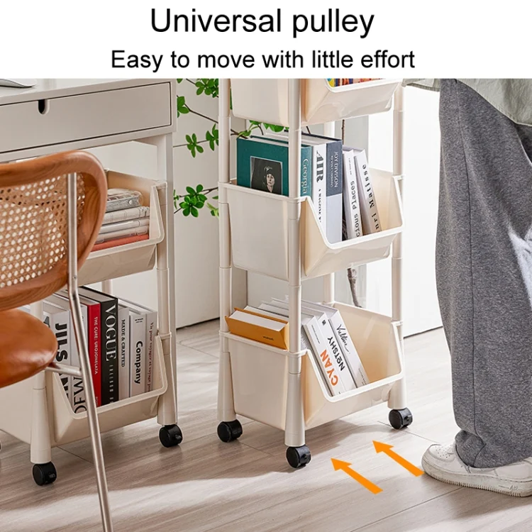 Household Movable Floor-Standing Trolley Bookcase Multifunctional Kitchen Bedroom Shelf With Wheels