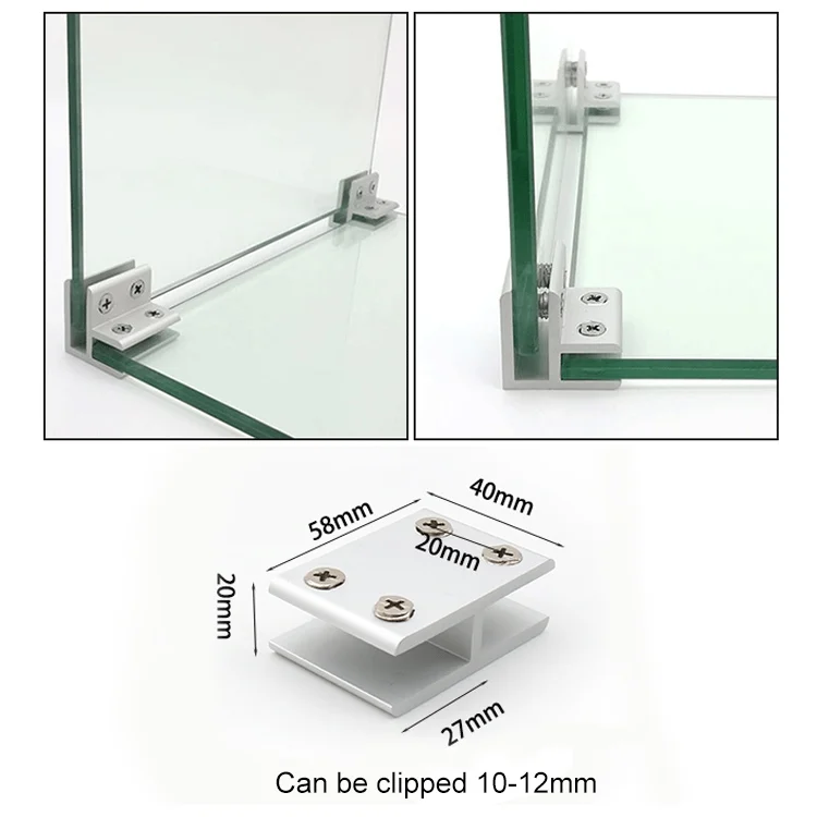 Aluminum Alloy Glass Combination Clamp Cabinet Partition Fixing Clip, 180 degrees Cliped 10-12mm
