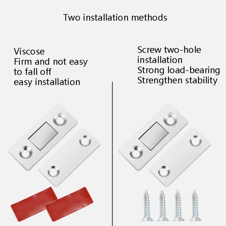 4. Features: long-lasting demagnetization, resistance to strong wind, strong and durable, strong magnetic attraction, tight closing, two installation methods (adhesive/screw double-hole installation), firm and not easy to fall, simple installation, convenient and practical, not easy to rust, Not easy to age