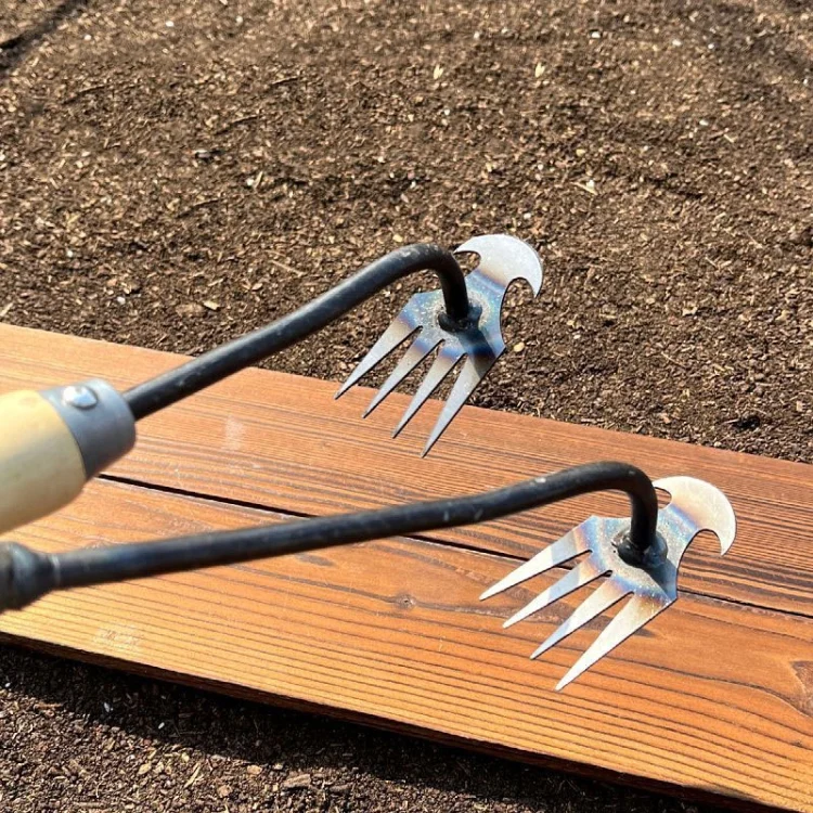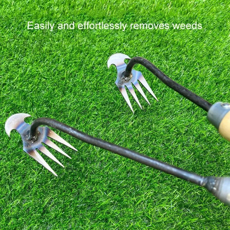 Four-Tooth Dual Purpose Weed Remover Tool Gardening Weed Rake Uprooting Weeding Tool